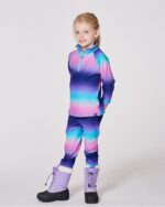 Designed to provide increased warmth and excellent range of motion beneath a snowsuit, these base layers are essential for skiing, snowboarding, and other cold weather sports. This two-piece thermal underwear set is made from thick brushed jersey with a super soft finish and ultra-comfortable feel. With an allover purple gradient print, this set includes a long raglan sleeve top with a half zip neckline and a pull-on pant with a stretchy elastic waist.