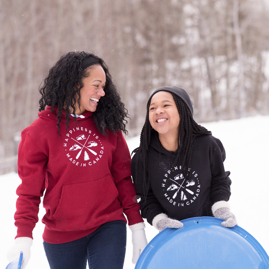 For each direction of Canada, we sought iconic landscape symbols to show our love and appreciation for all the happiness we have found within its borders. From icebergs to the north, trees along the southern border, mountains in the west and our vast water to the east, our rugged landscape not only connects us, but has worked its way into our very fabric. There is a moment of happiness being made in every corner of Canada.