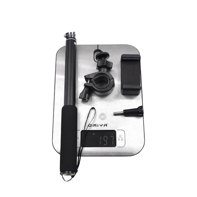 1*Selfie stick,1*ABS Phone folder,1*M5 Screw,1*Bicycle mounting bracket,1*Silicone gasket