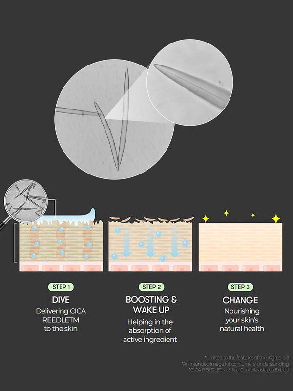 • Cica Reedle™ Technology: Micro-needles help to boost the absorption of nutrients, improving skin texture and reducing the appearance of pores.