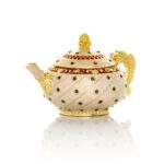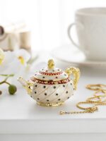 A charming handmade White with Colorful Dots Teapot Trinket Box .