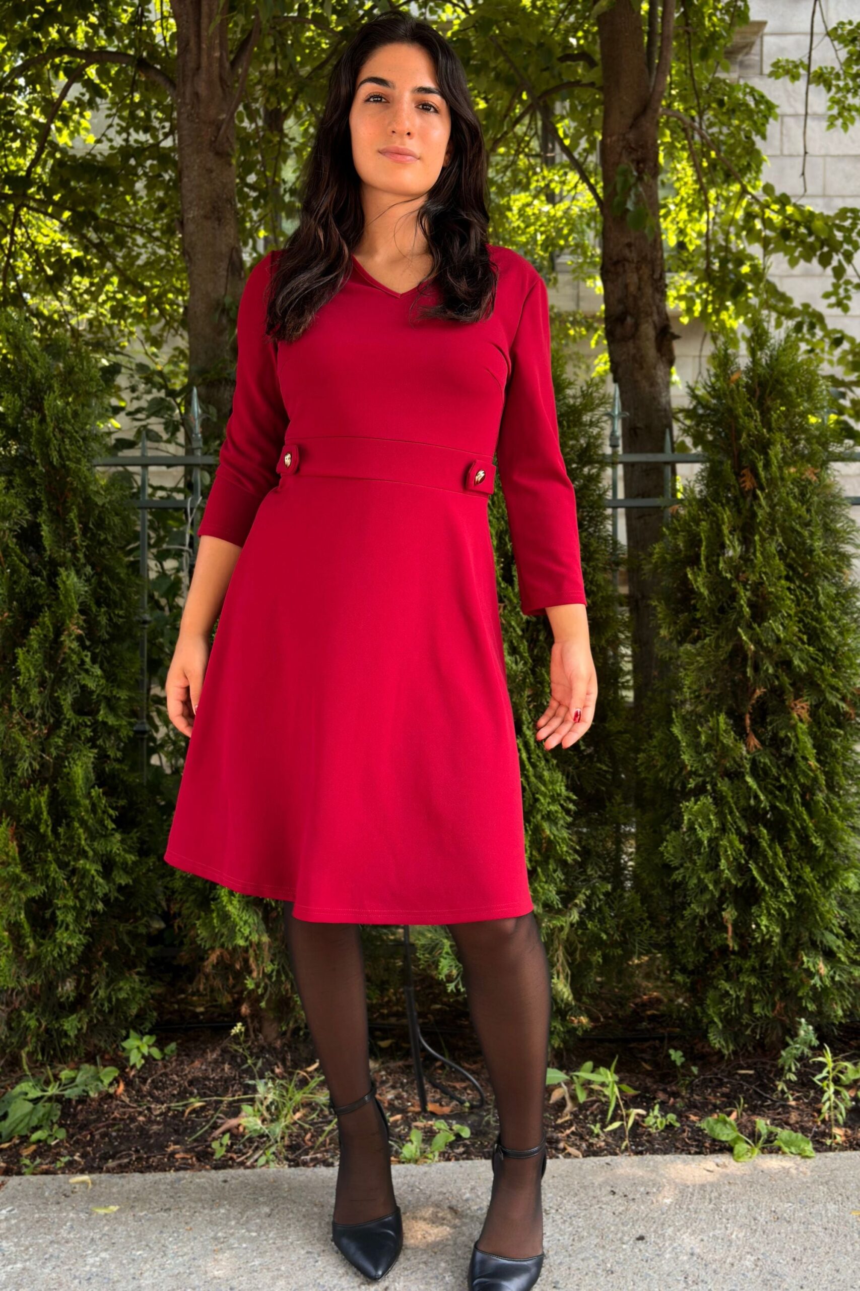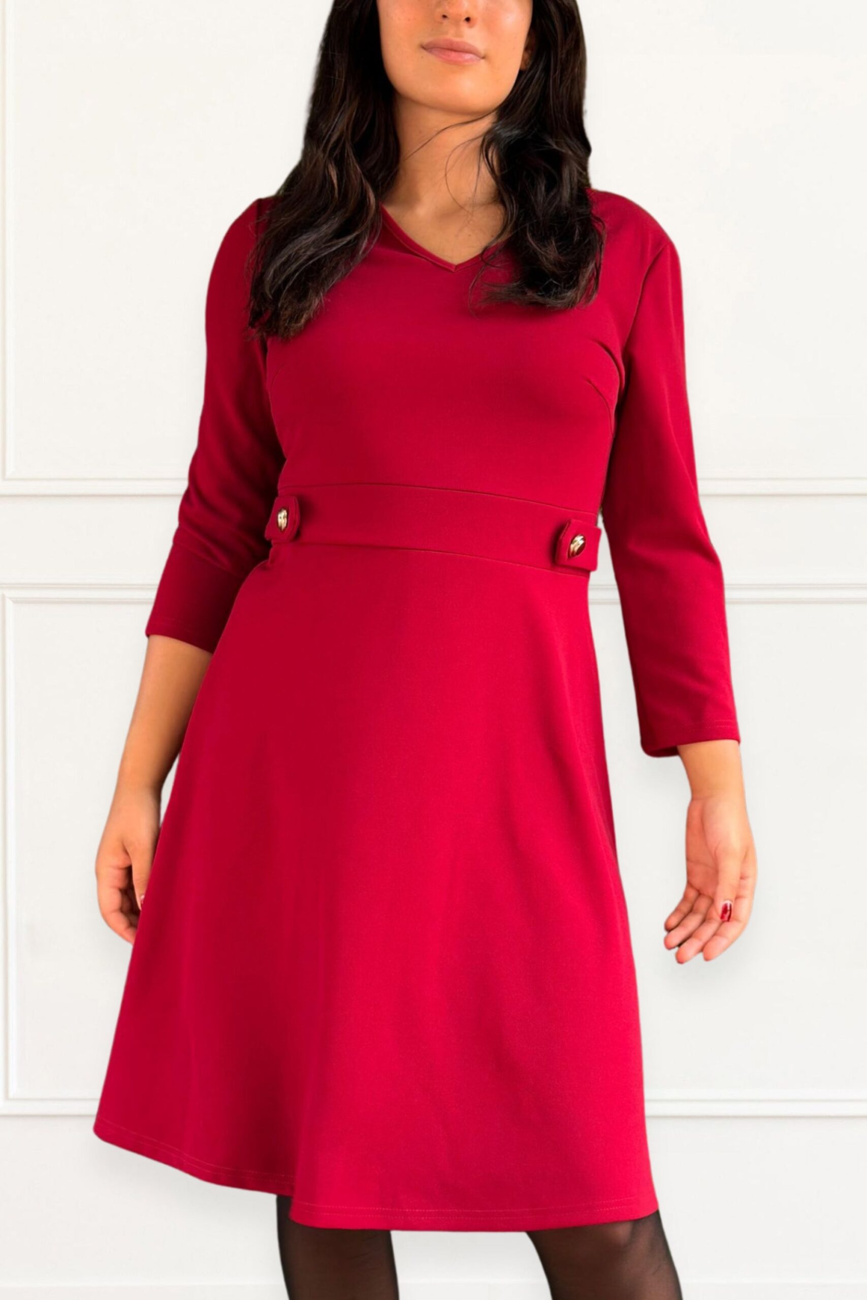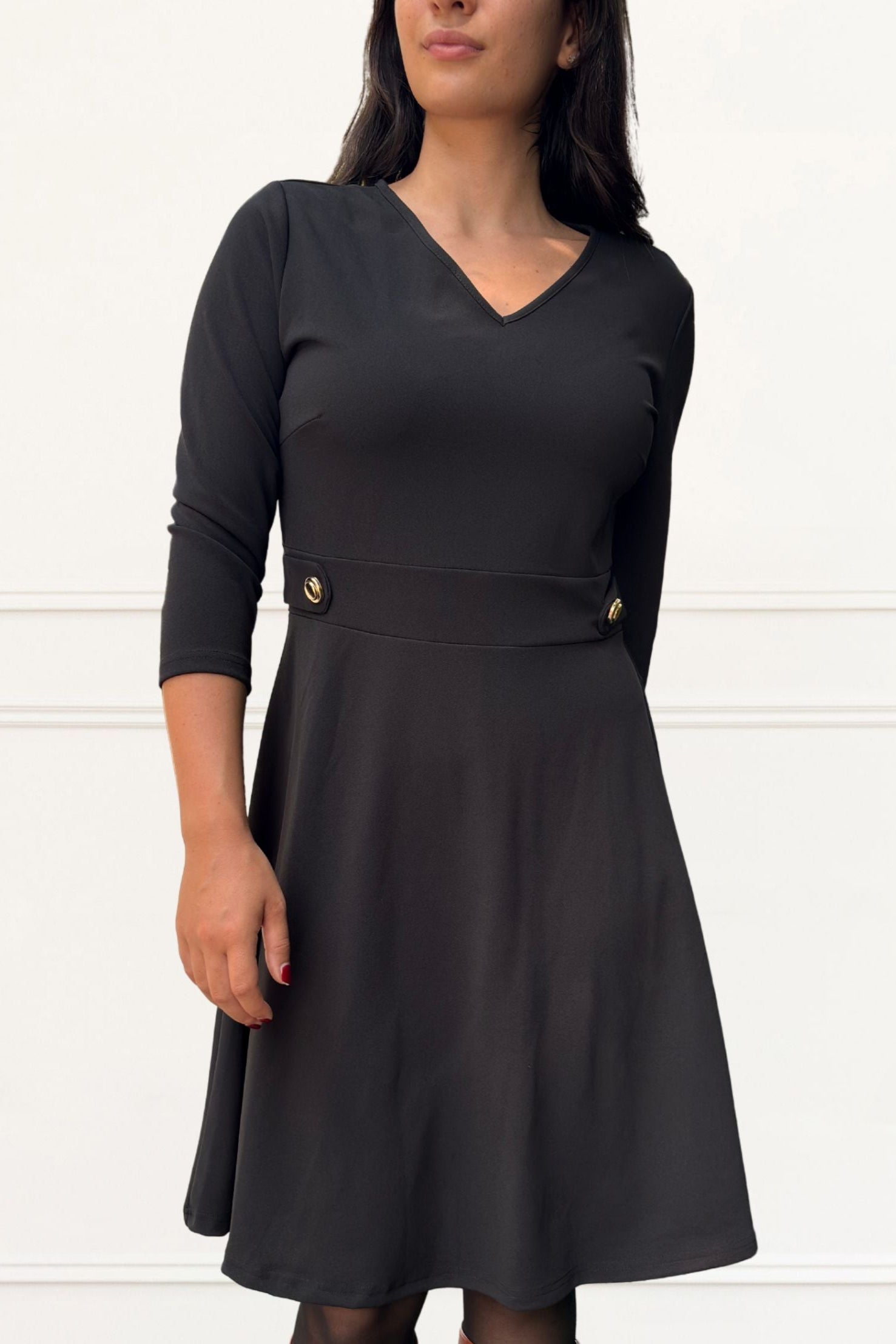 Women’s A-Line Dress with Gold Button Detail – Nathalie by ANNICK APPAREL | Elegant Knee-Length Dress, Workwear & Day-to-Night Outfit for Women