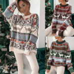 2 reviews for Women’s Fashion Round Neck Loose Christmas Theme Jacquard Long Sleeve Sweater | Free Shipping