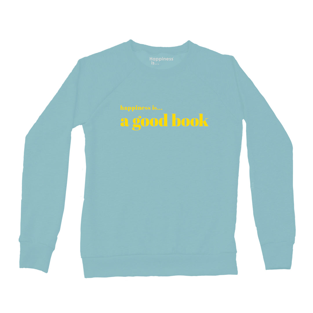 Women’s Good Book Crew Sweatshirt, Teal | Happiness Is Inc, Made In Canada