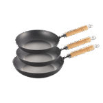This versatile three-piece set includes 20cm, 24cm, and 28cm pans to handle everything from simple breakfasts to hearty family meals. Over time, the carbon steel surface naturally builds a seasoned patina, creating a naturally non-stick cooking experience that enhances flavor and makes cleanup easier.